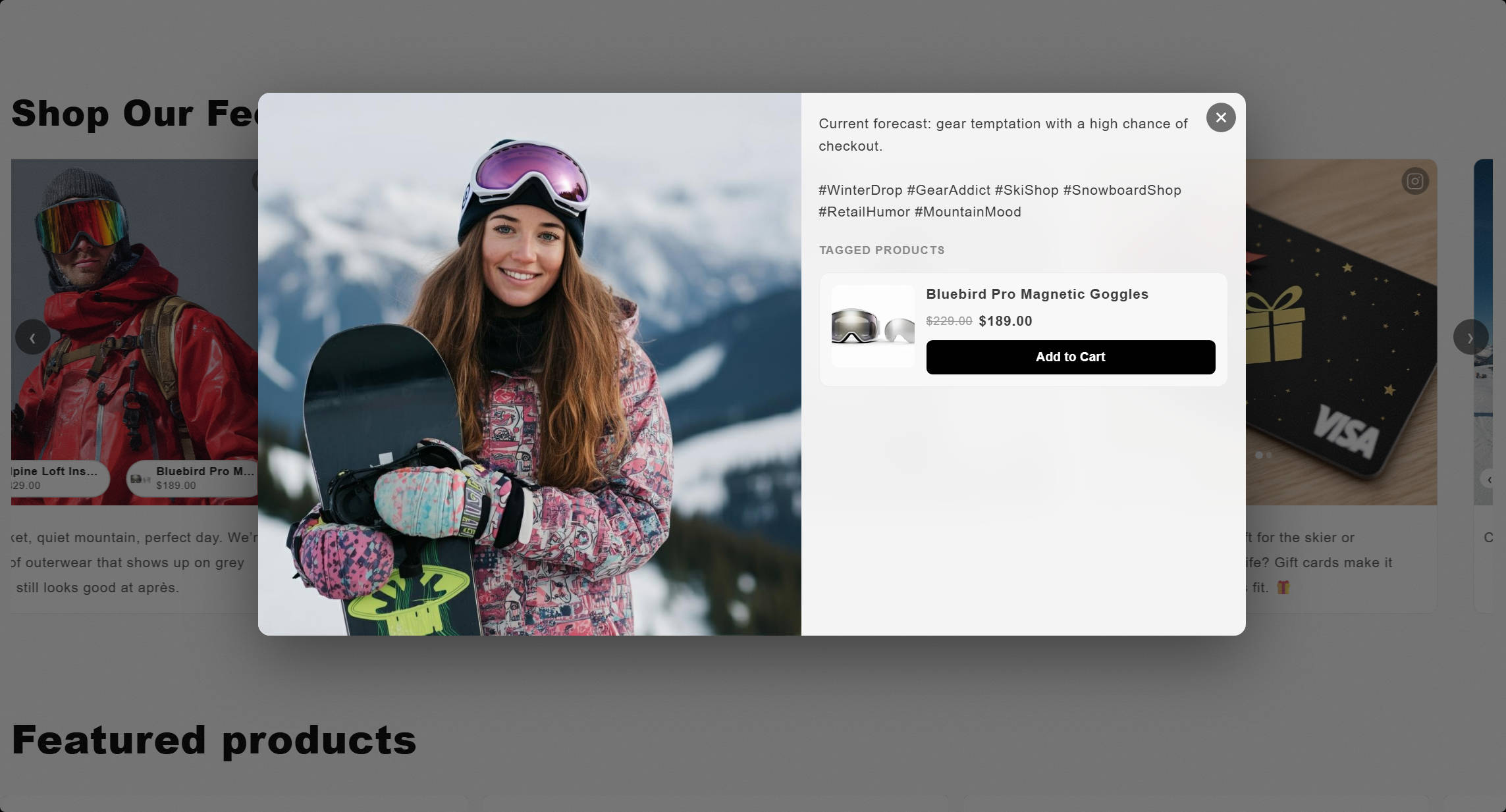 Connect your Instagram or TikTok business account. Tag products directly to posts and videos. Embed a shoppable feed anywhere on your store.